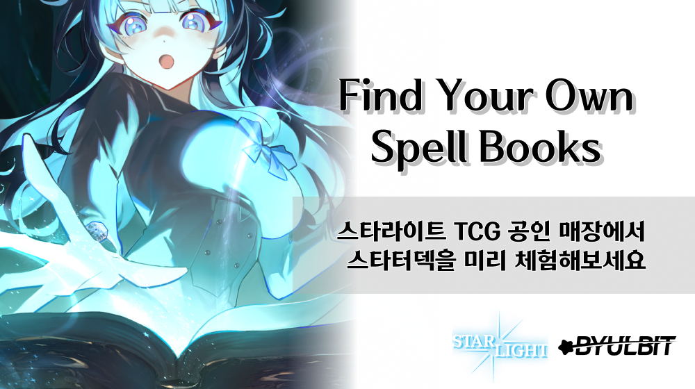 2026년 1월 11일 월요일부터 전국 공인 매장에서 스타라이트 TCG 스타터덱을 미리 체험할 수 있습니다. (공인 매장 목록은 <여기>를 확인하세요) 매장에 요청하시면 체험용으로 비치된 4종류의 스타터덱과 설명서, 그리고 웹사이트의 <인터랙티브 튜토리얼 가이드>를 통해 배워볼 수 있습니다. 많은 참여 바랍니다!