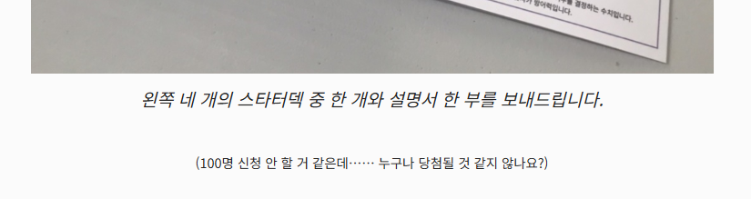 이때까지만 해도 100명을 추첨으로 준다고 공지했지만, 100명 넘더라도 나중에 마치 “추첨으로 드리면, 탈락하신 분이 너무 아쉬우시겠죠? 저희가 모든 분들에게 드리겠습니다!”라는 선심성 멘트를 쓰며 생색을 낼 생각을 하고 있었습니다.